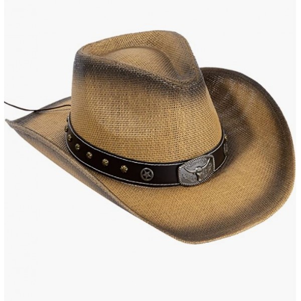 Brown Bull Men & Women's Woven Straw Cowboy Hat w/Hat Band