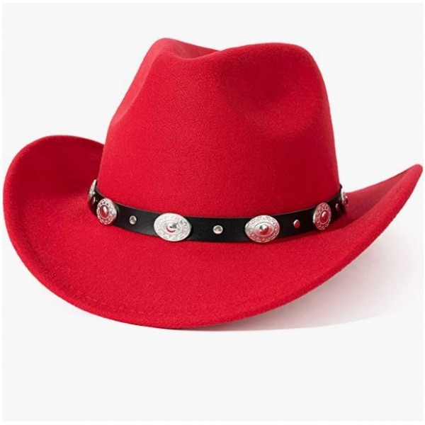 Red Men & Women's Felt Wide Brim Western Cowboy Hat