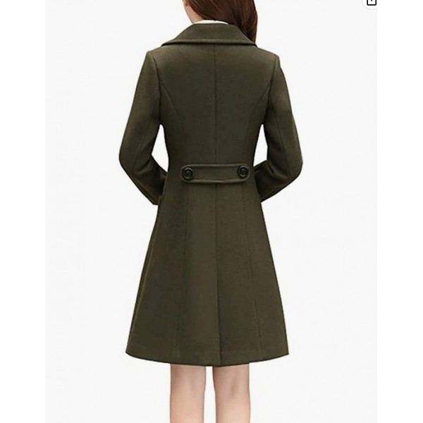 - Women mid-long wool blend coats, solid color, long sleeves, front button closure, double-breasted, notched lapel, 2 handbags on the side, 2 decorative buttons on the back.