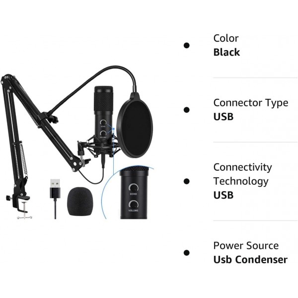 - 【Podcast Equipment Bundle】: The all-metal matte black studio USB desk microphone comes with a pop filter, shock mount, boom arm, table mount, a USB cable, It is an excellent fit for those looking to build their home studio. The gaming PC microphone also includes friendly tech support to ensure an enhanced experience.