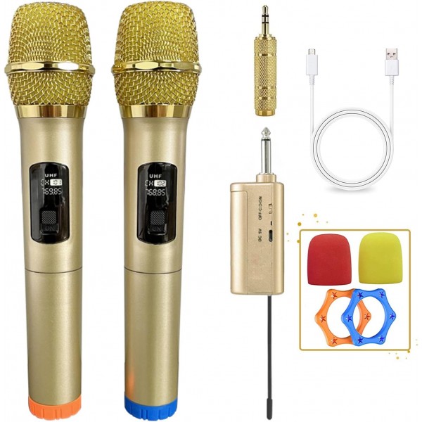 VMKLY Professional Wireless Microphones for Karaoke Singing, Rechargeable Dual UHF Dynamic Microphone, with 200ft UHF Receiver, Plug and Play, Speech, Wedding, Church, PA System