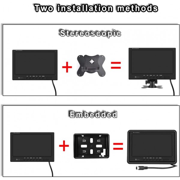 • 【Back up Camera Systems for Car】The rear Camera Monitor will be a black screen when there is no signal input to prevent distraction while driving. Note: Please stop to check whether the signal cable has been inserted and turn on the display switch, and plug in the power supply and video signal cable normally.
