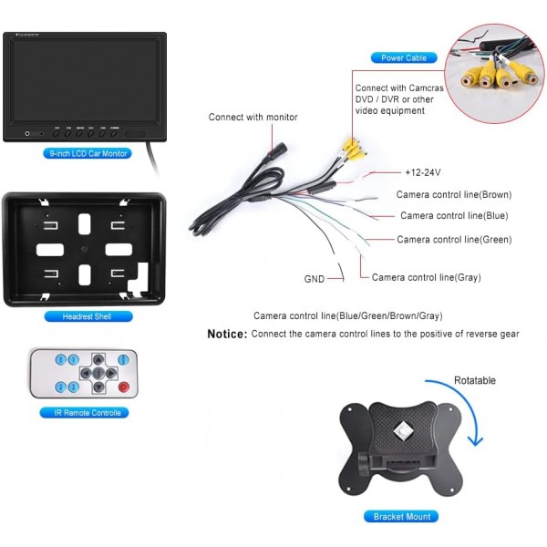 • 【Easy Installation】Vehicle backup cameras is Easy Installation.Backup Camera Monitor Working perfectly with Car DVD, VCD, camera, STB, satellite receiver, and other video equipment. reverse camera for car, front camera for car, rear camera for car, camera for car, rear view camera for car.