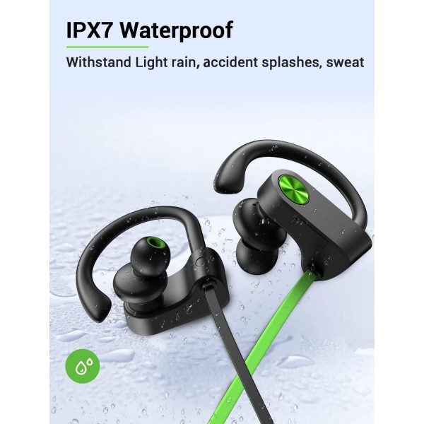 USAMS Bluetooth Headphones, Deep Bass Wireless Running Headphones w/16 Hrs Playtime, Bluetooth Earbuds in-Ear w/Earhooks, IPX7 Waterproof Sports Earphones with Microphone for Calls