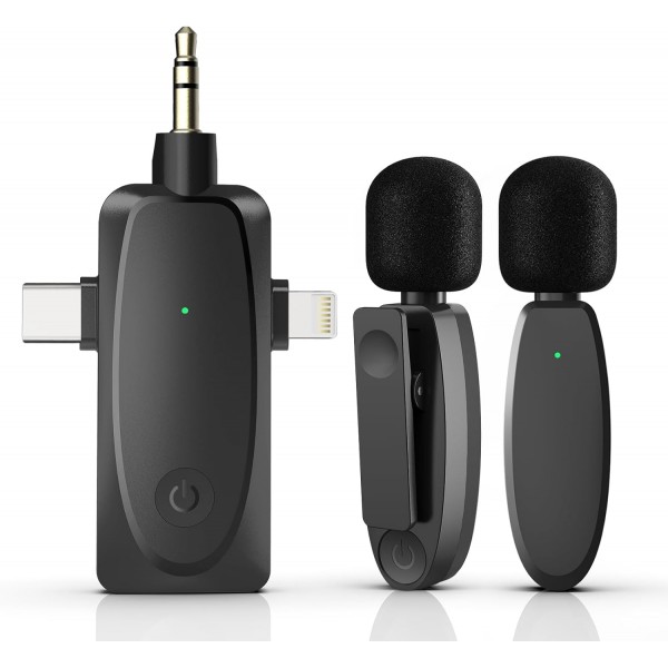 OTIUM in 1 Mini Microphone Wireless Lavalier Microphones for iPhone, Android and Camera- 2.4G Cordless Double Mics with Noise Reduction Video Recording Mic for Interview,Vlog, YouTube, TikTok