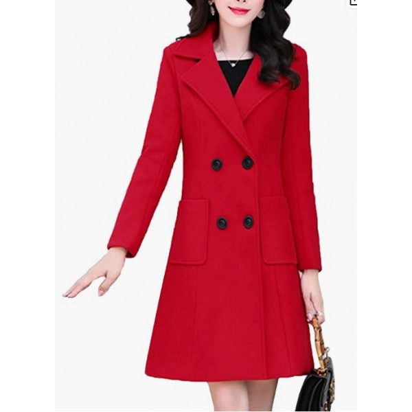 - Women mid-long wool blend coats, solid color, long sleeves, front button closure, double-breasted, notched lapel, 2 handbags on the side, 2 decorative buttons on the back.