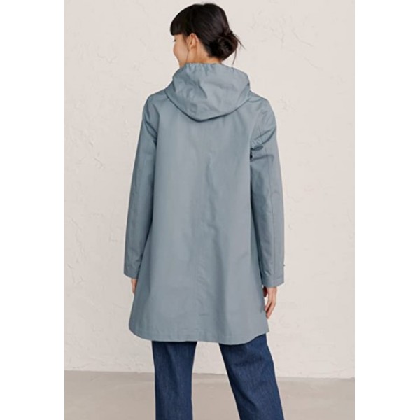 - This rain coat for women has a low-hip length and fully taped seams. With long sleeves and cuff tab fasteners, the Seasalt Cloudburst will keep out the breeze on chilly evenings. The hood can be adjusted with drawstring toggles for extra protection.