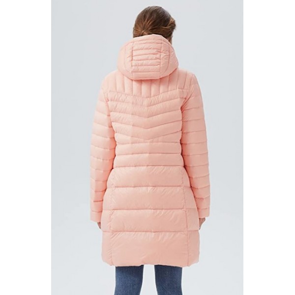 Tropical Peach Women's Lightweight Down Coat Packable Jacket with Stand Collar