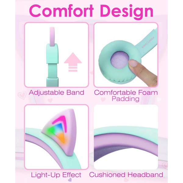 - 3 Lighting Modes & Unique Design: The lights are displayed on both sides of the headset, and there are three modes to switch by one button. designed with Unique gradient color, this Bluetooth headphones are also the child's favorite gift!