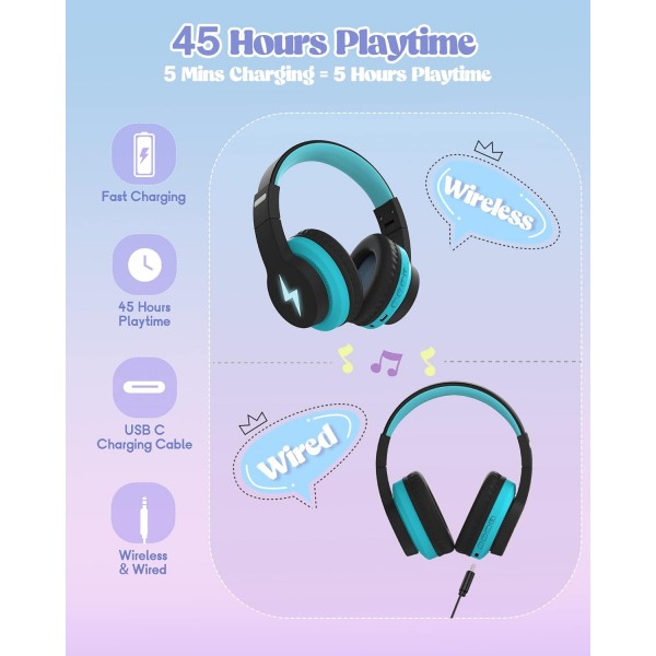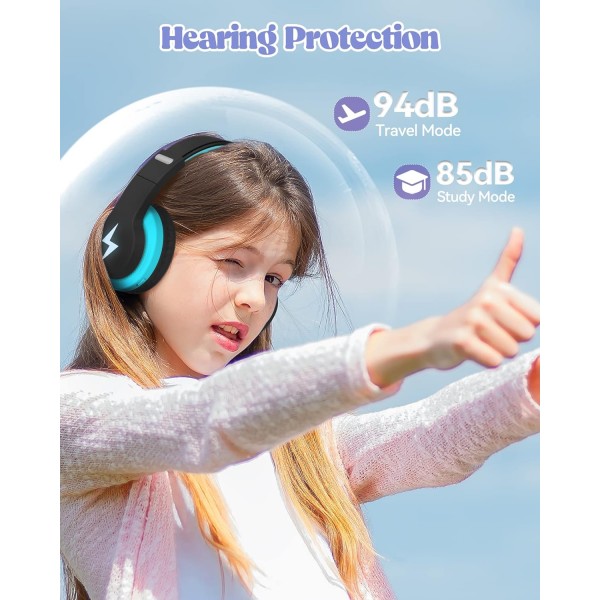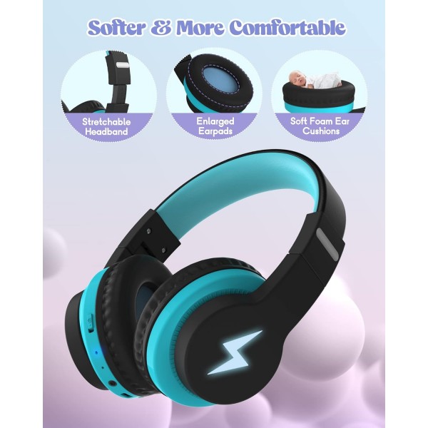 • 3 Lighting Modes & Unique Design: The lights are displayed on both sides of the headset, and there are three modes to switch by one button. designed with Unique gradient color, this Bluetooth headphones are also the child's favorite gift!
