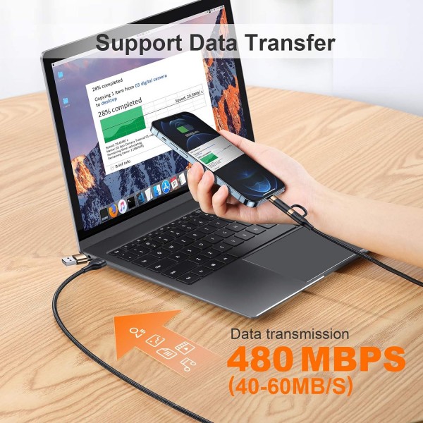 - 60W Fast Charging & Data Transfer: Output power up to 20V 3A, which is ensured by high-speed safe charging. USB 2.0 supports data transfer at up to 480Mbps. Support charging and data transmission at same time.Transfer 1G File only Within 30s.